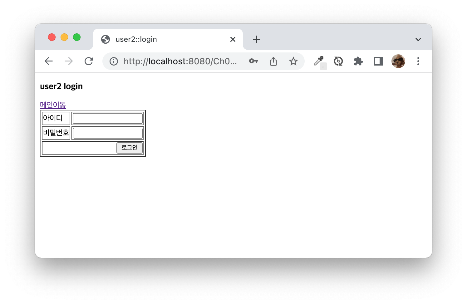 http://localhost:8080/Ch08/user2/login