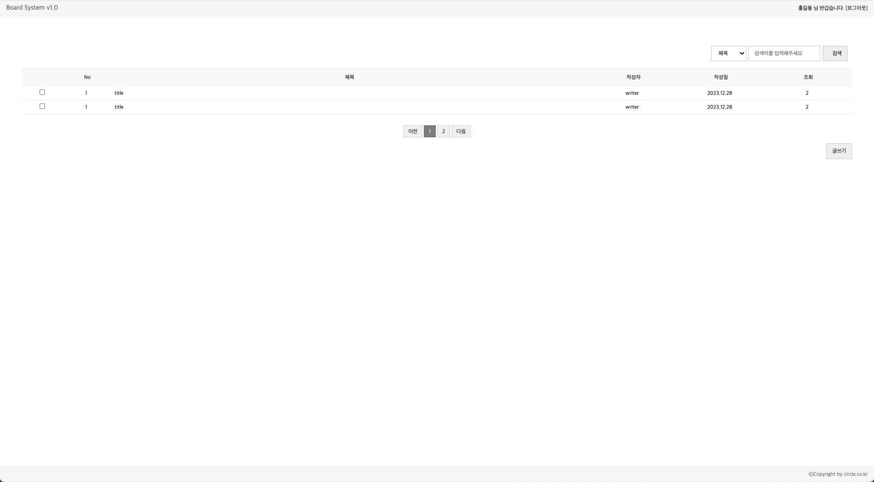 - Board: 글 목록, 글 쓰기, 글 보기, 글 수정