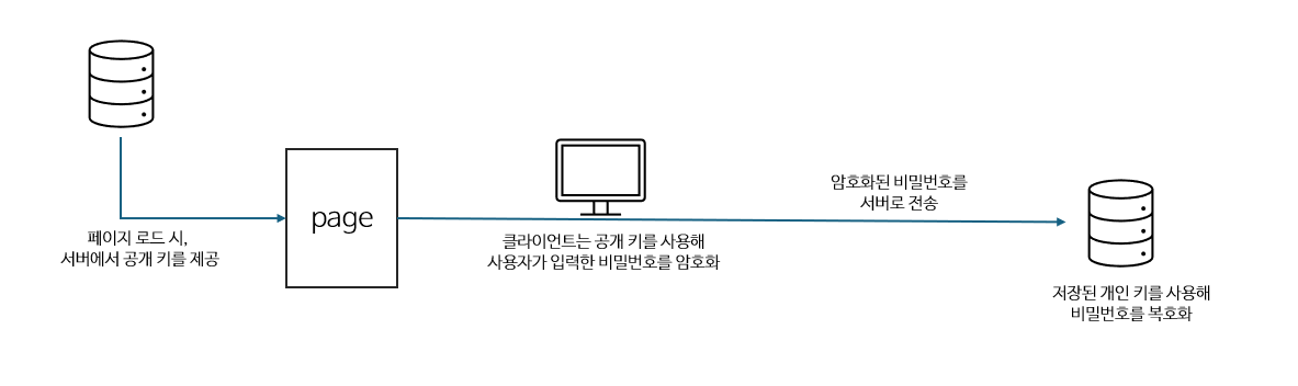 - 클라이언트 측에서 사용자가 입력한 패스워드를 비대칭 암호화(RSA) 방식으로 패스워드를 암호화해서 서버에 전송한다.
