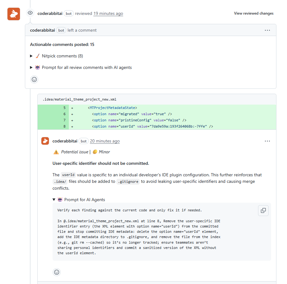 먼저 CodeRabbit의 리뷰 결과 요약입니다.