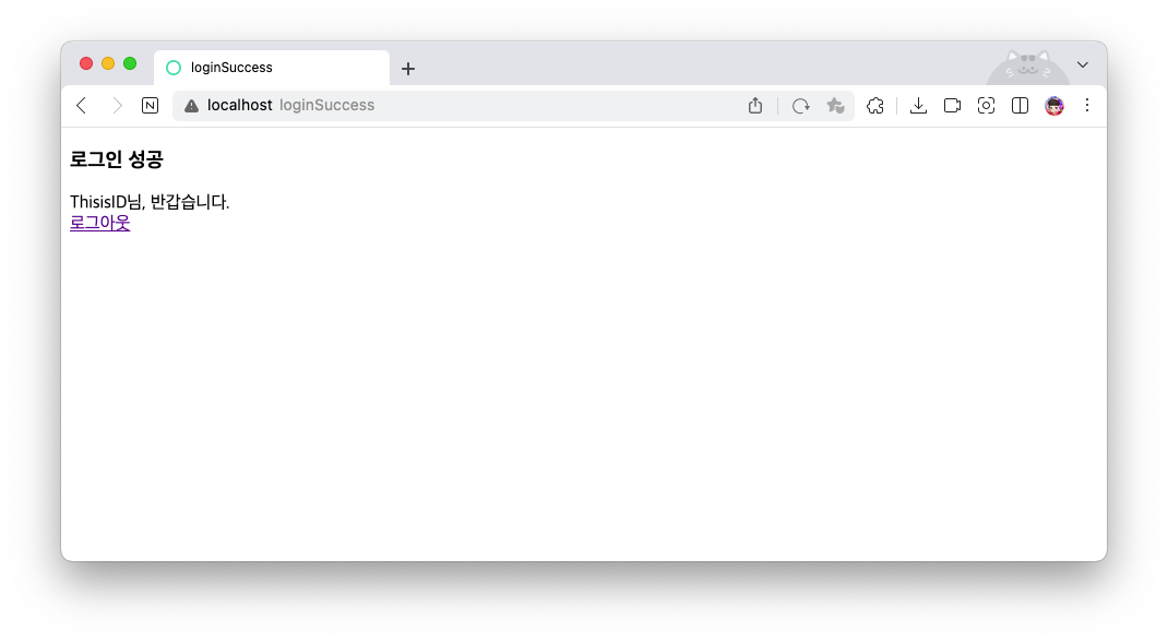 로그인에 성공하면 로그인 성공 페이지인 loginSuccess.jsp 파일로 전송된다.