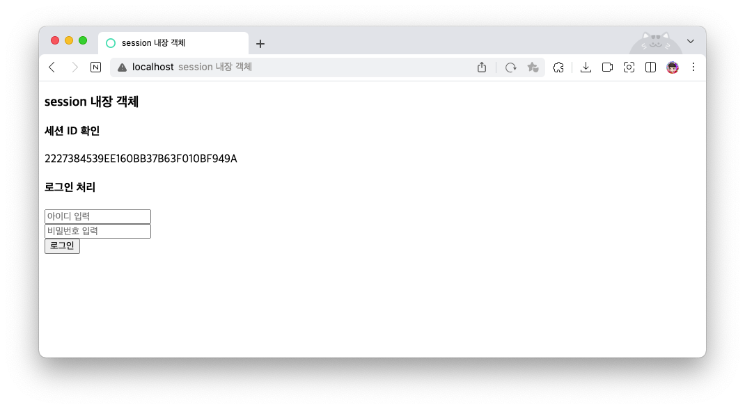 예제를 통해 session 내장 객체에 대해 이해해 본다.