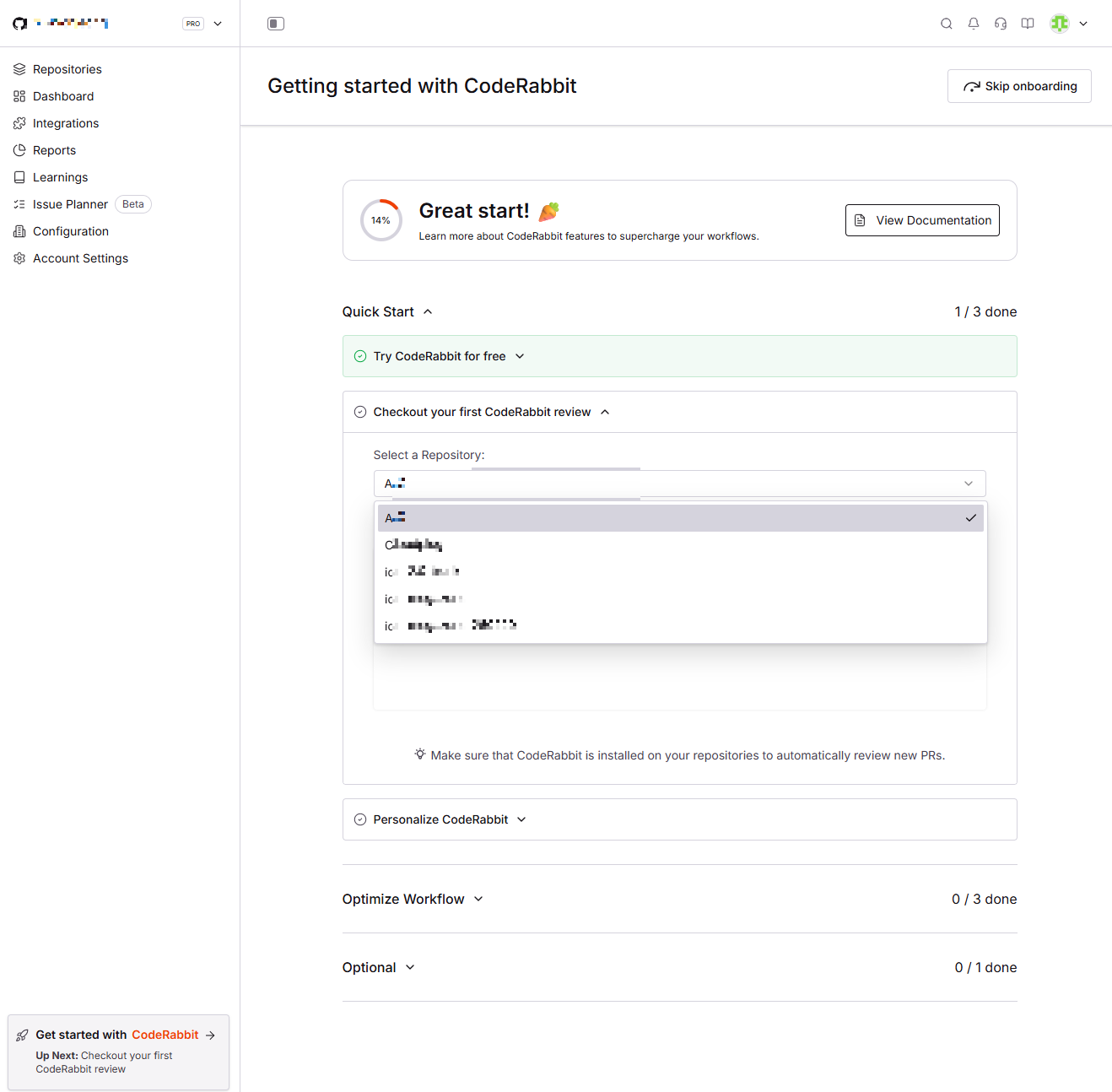 CodeRabbit은 내가 작성한 코드를 검수해주는 가상의 '시니어 개발자' 프로그램입니다. 주요 특징으로는 (1) PR 기반 자동리뷰- GitHub에 Pull Request를 올리면 AI가 라인 단위로 코드 리뷰를 합니다. - 단순 오타, 동시성 문제, API 오남용 등의 코드 문제를 확인할 수 있습니다. (2) Context 인식- 프로젝트 전체 구조를 이해하여 의존성 보안 이슈나 아키텍처 위반 사항을 확인할 수 있습니다. (3) 시퀀스 다이어그램 생성- 복잡한 백엔드 로직의 흐름을 파악하여 자동으로 시퀀스 다이어그램을 그릴 수 있습니다. CodeRabbit 사용해 보기 1. 회원가입https://www.coderabbit.ai/ AI Code Reviews | CodeRabbit | Try fo..