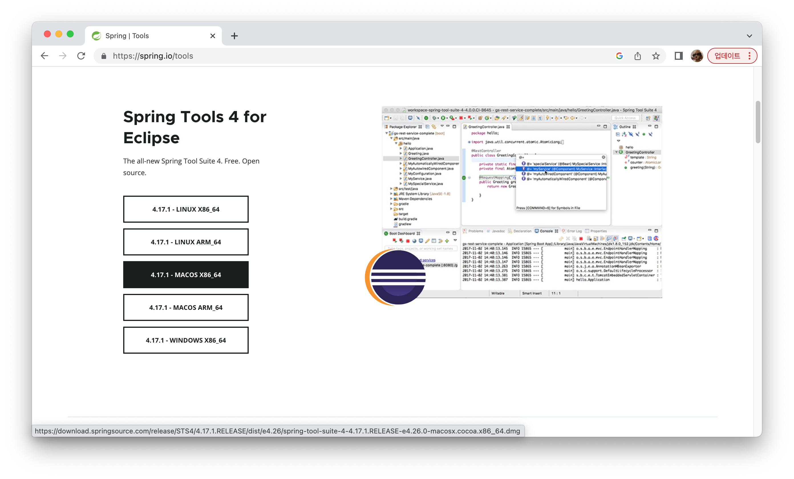 이전 글 [Spring Boot] 스프링부트 DB 연동 + Lombok 설치 +간단 회원 정보 입력, 목록, 수정 [Spring Boot] 스프링부트 DB 연동 + Lombok 설치 +간단 회원 정보 입력, 목록, 수정 스프링부트와 DB 연동하기 Thymeleaf Plugin for Eclipse 3.0.1 설치 [Help] - [Eclipse MarketPlace] Lombok 설치하기 https://projectlombok.org/download Download projectlombok.org Specify location 클릭 SpringToolSuite4.app - Contents - Eclipse this-circle-jeong.tistory.com JPA JPA(Java Persistence ..