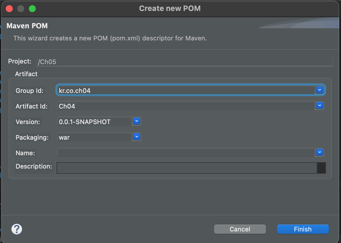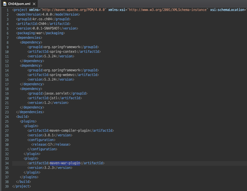 (3) 메이븐 프로젝트 설정 파일 작성 (pom.xml)