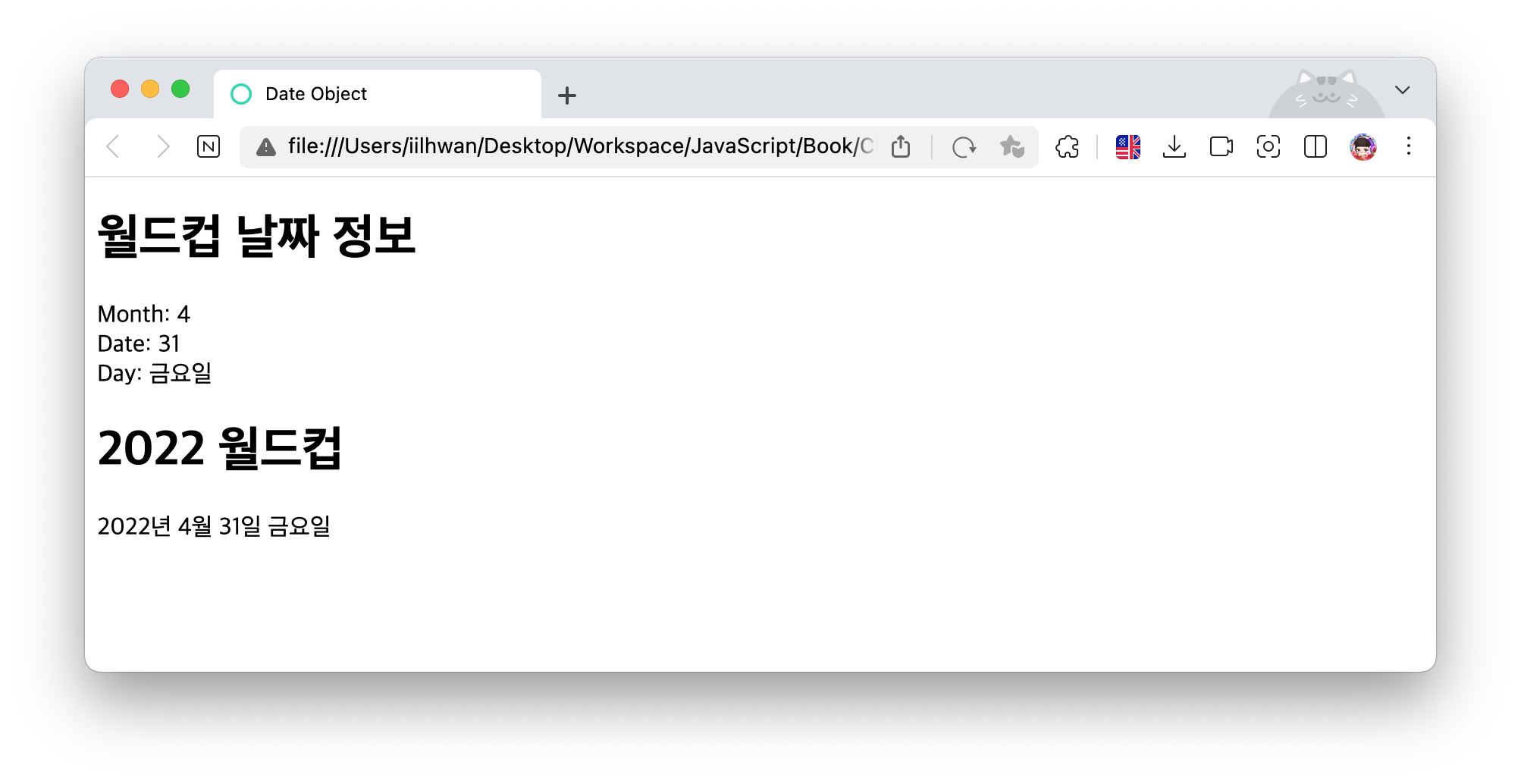 [예제1] 오늘 날짜 정보와 2002년 월드컵 날짜 관련 정보 출력하기