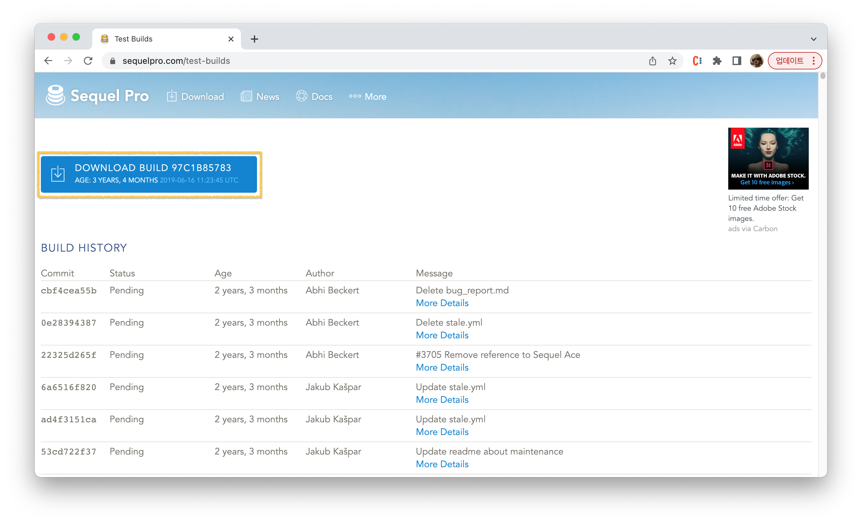 그래서 아래 주소의 깃허브에서 배포하는 nightly builds의 Sequel Pro를 새로 다운받는다.